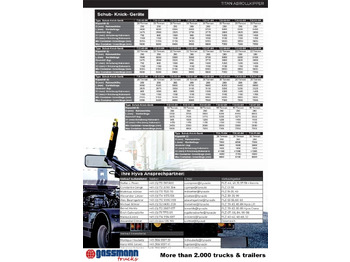 Hakenhöhe 1.570mm, Titan-Ausführung, hydraulische Kombi-Containerverriegelung (innen und außen), mechanische Aufnahmehakenverriegelung, Abdeckhaube Kunststoff über dem Steuerblock, Fahrerehausbedienung pneumatisch, Schnellgang komplett, Öltank geliefert mit 2"Schläuchen & Anschlußmaterial, 84l Standartpumpe, Montagesatz schubfest für 14 mm Schrauben, Gerätelänge: 5.700mm!
